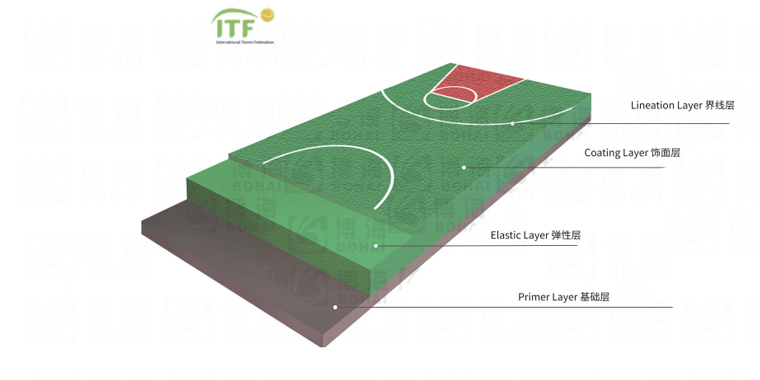 由PU彈性層BH-CS01、加強層和水性面漆耐磨層BH-WB01刮涂組成,該結構具有優(yōu)越物理性能,滿足人體工學的彈力科技,色彩美觀,施工方便、耐候性能強,防滑性好、容易保養的有點。